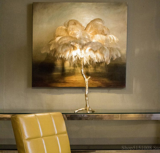 Roaring Ostrich Feather Palm Tree Table Lamp