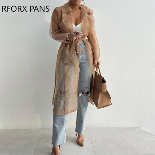 Chic Elegant Long Sleeves Mesh Casual Trench Coat